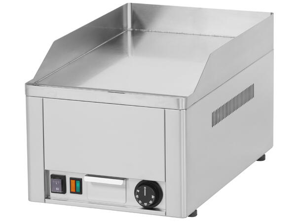 Flatgrill. Rillet. Chrome topplate forenkler rengjøringen.