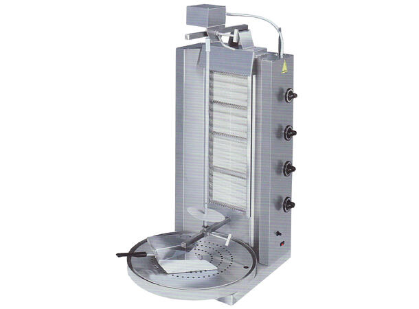 Gass-kebabgrill med roterende spyd.