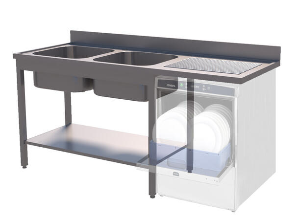 Oppvaskbenk, to kummer høyre 160x70x90cm